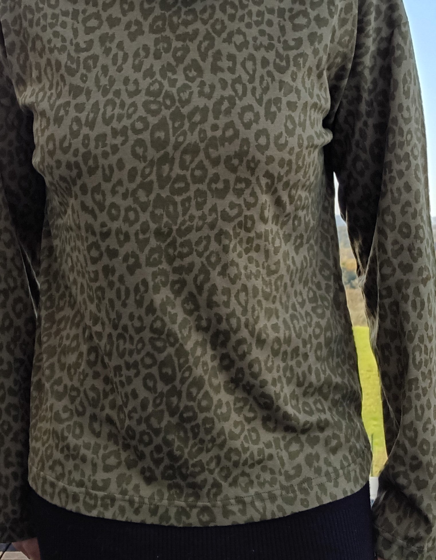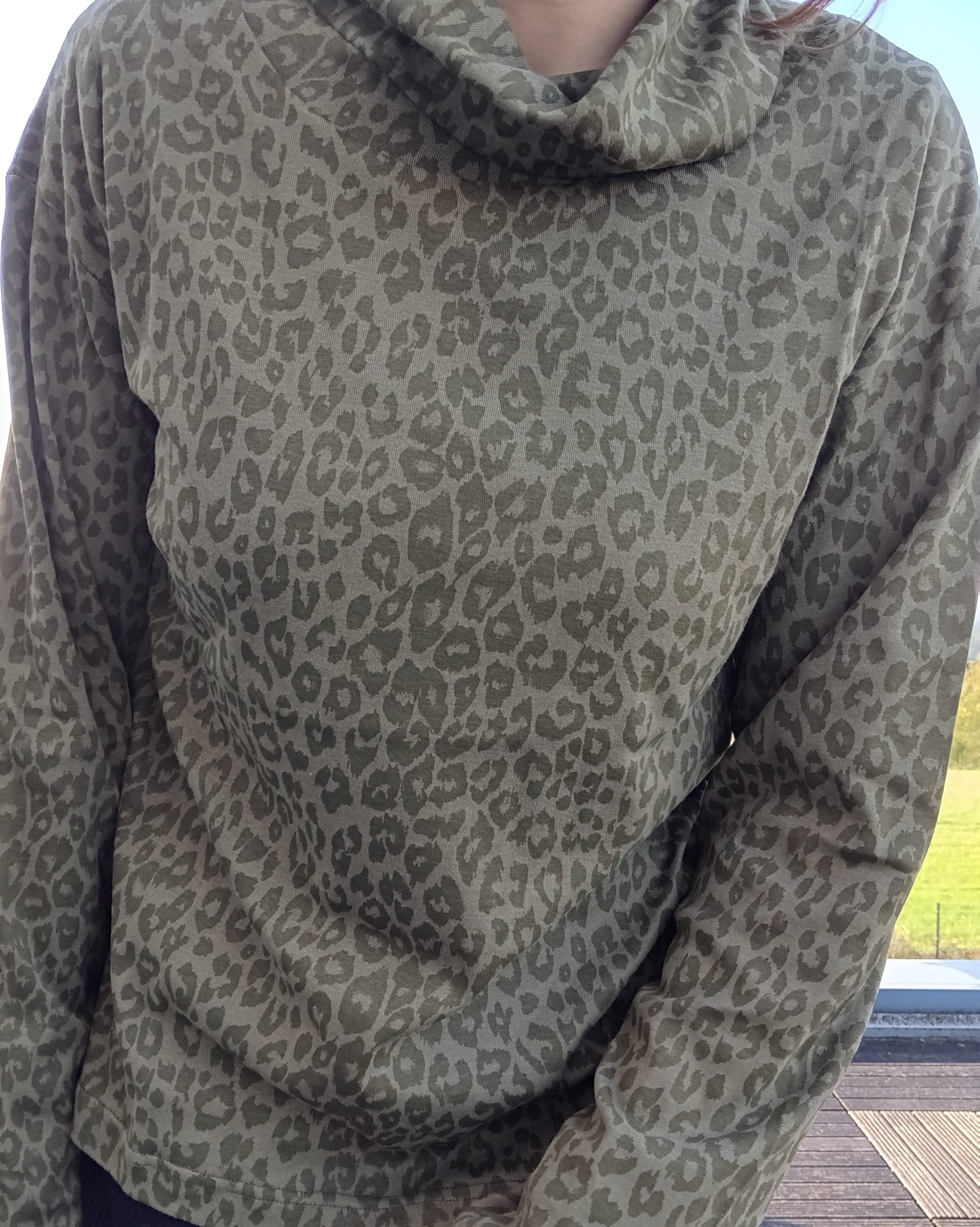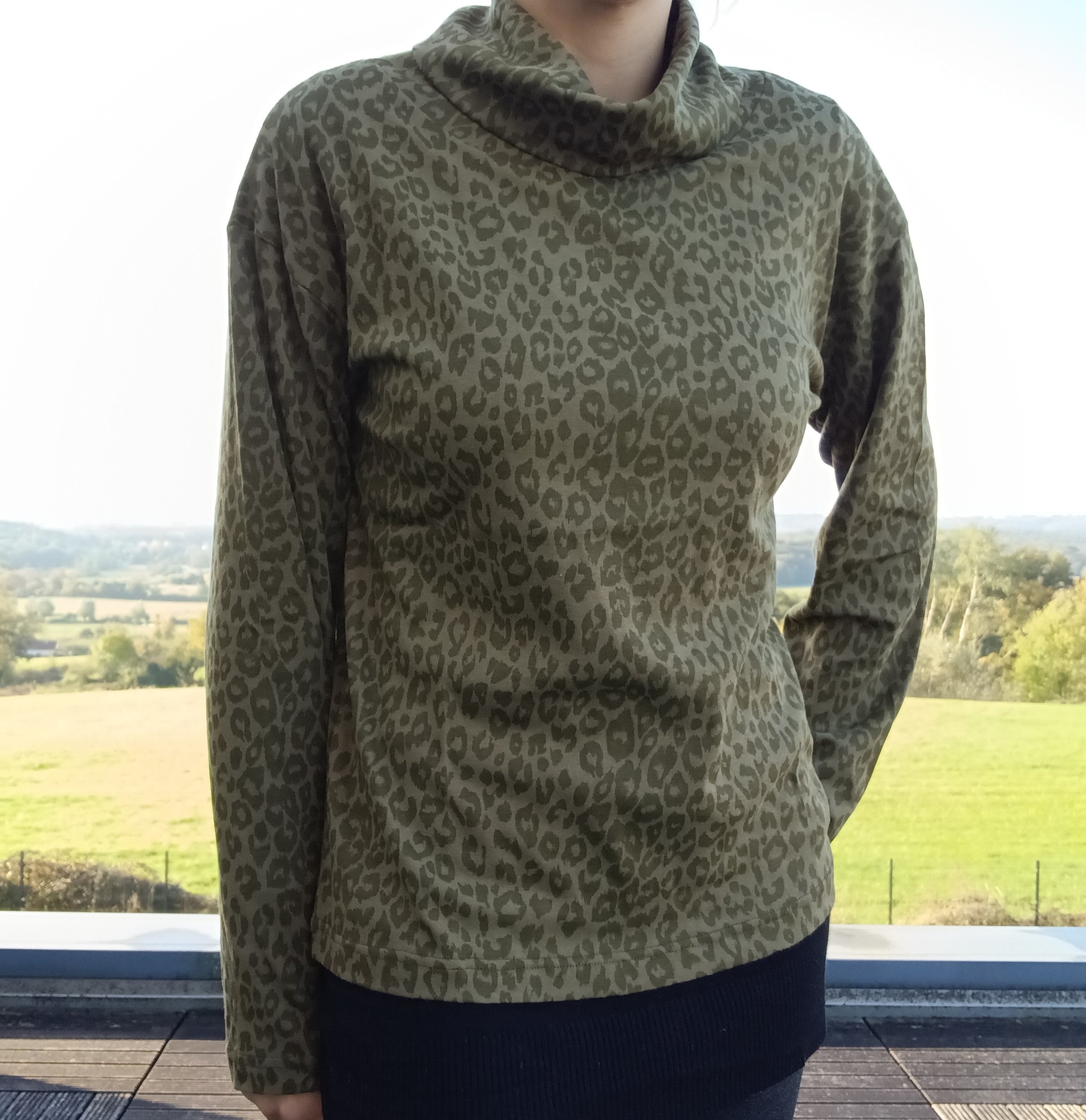 Pull fin à col montant motifs léopard kaki
