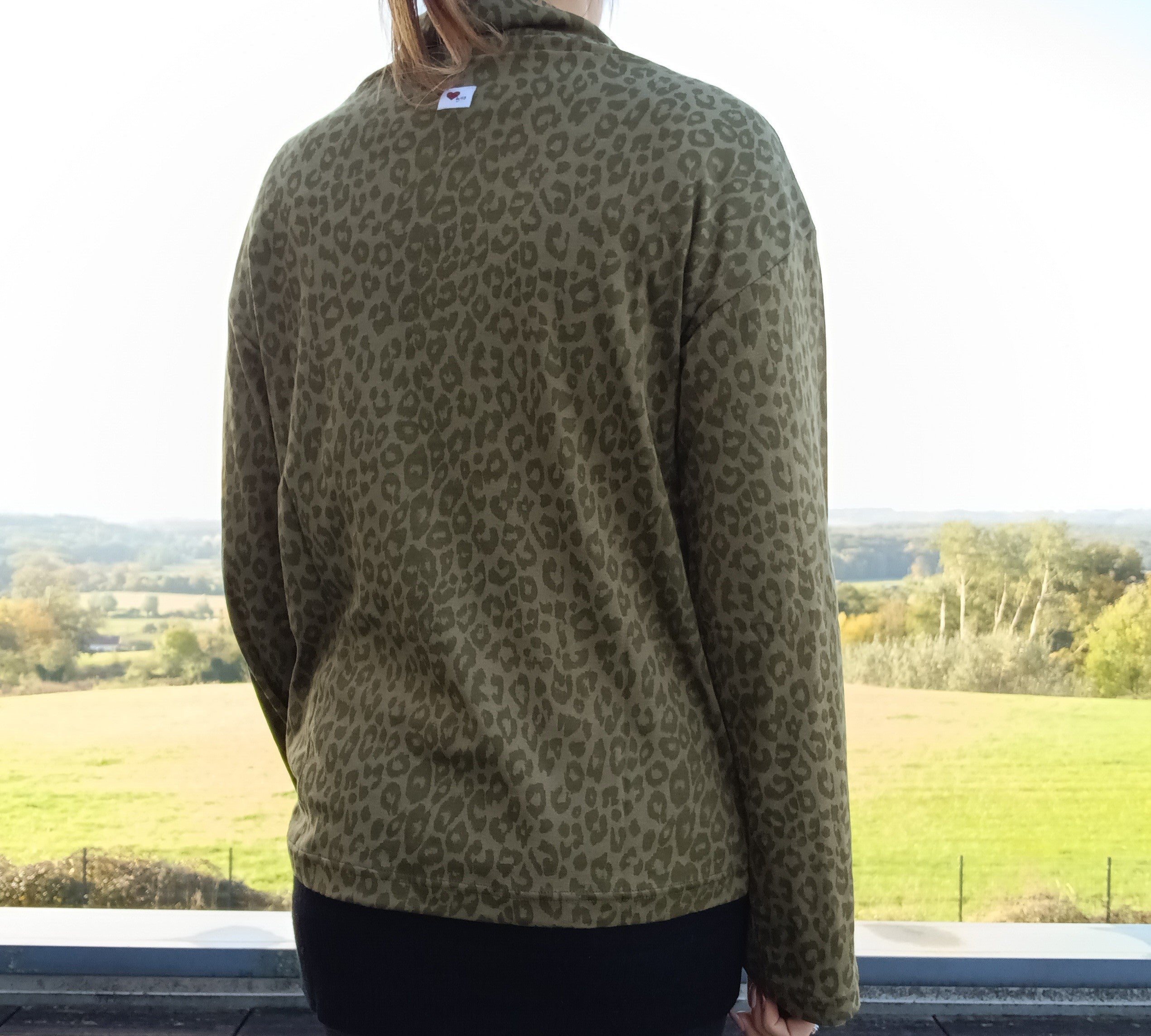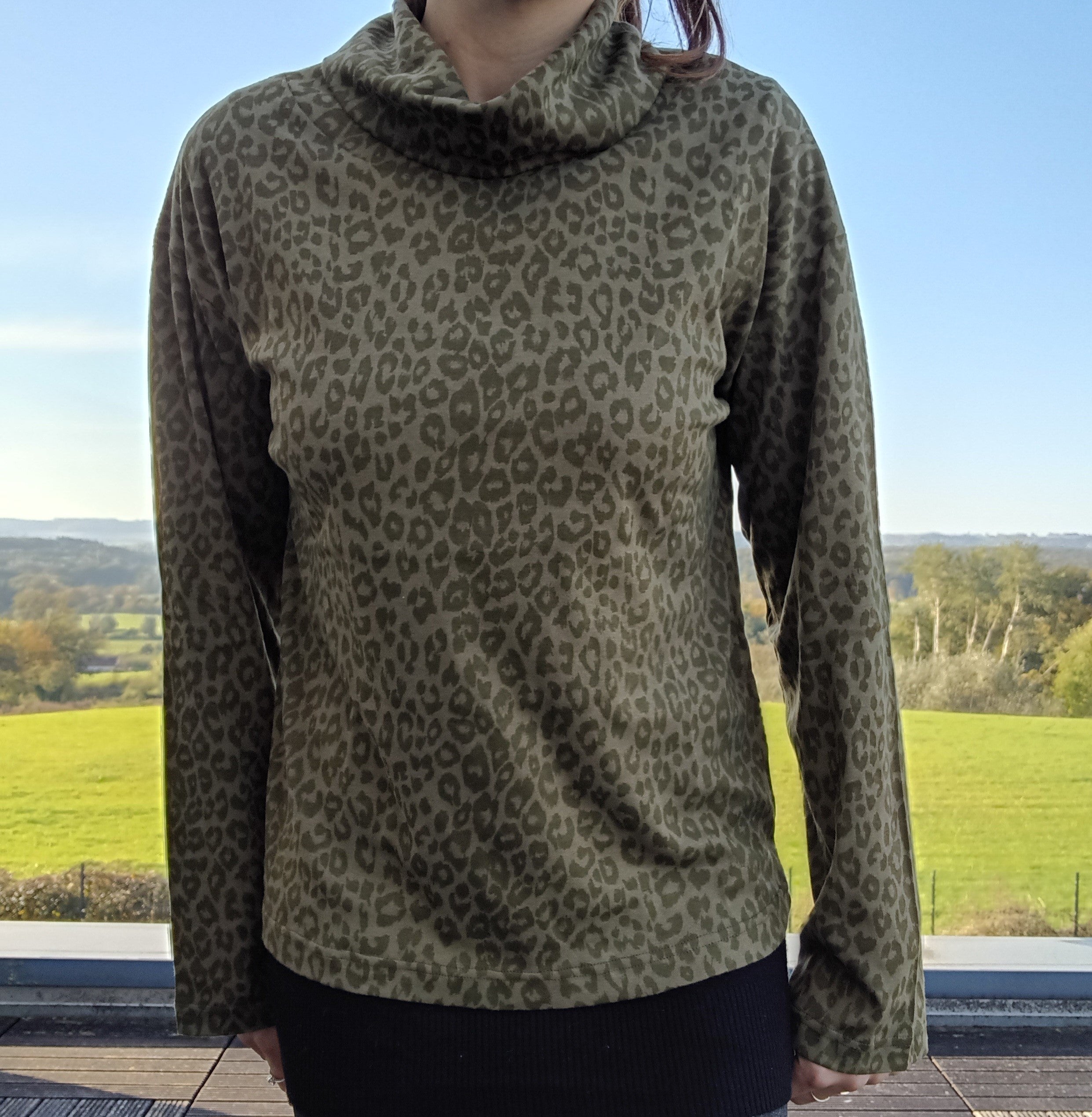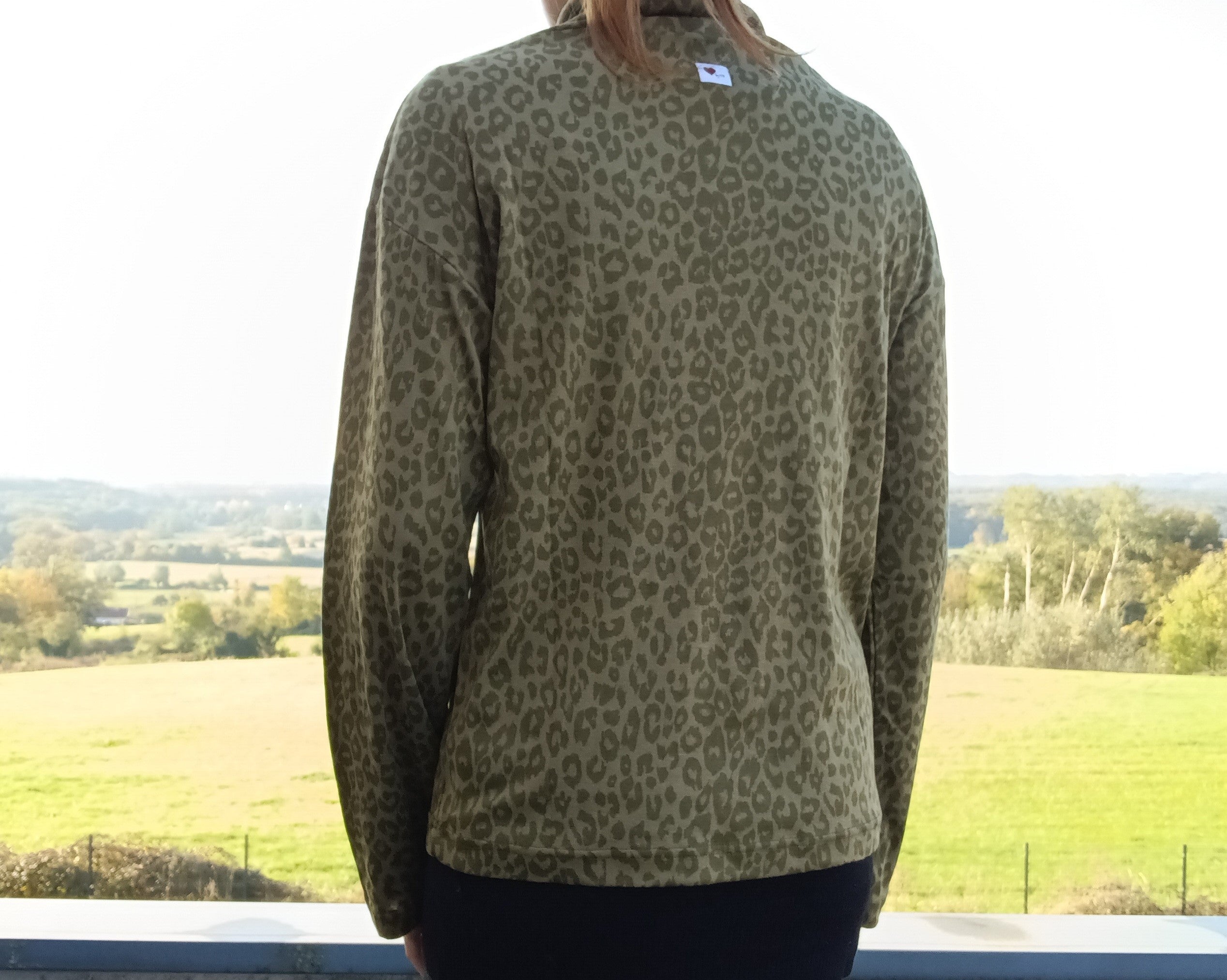 Pull fin à col montant motifs léopard kaki