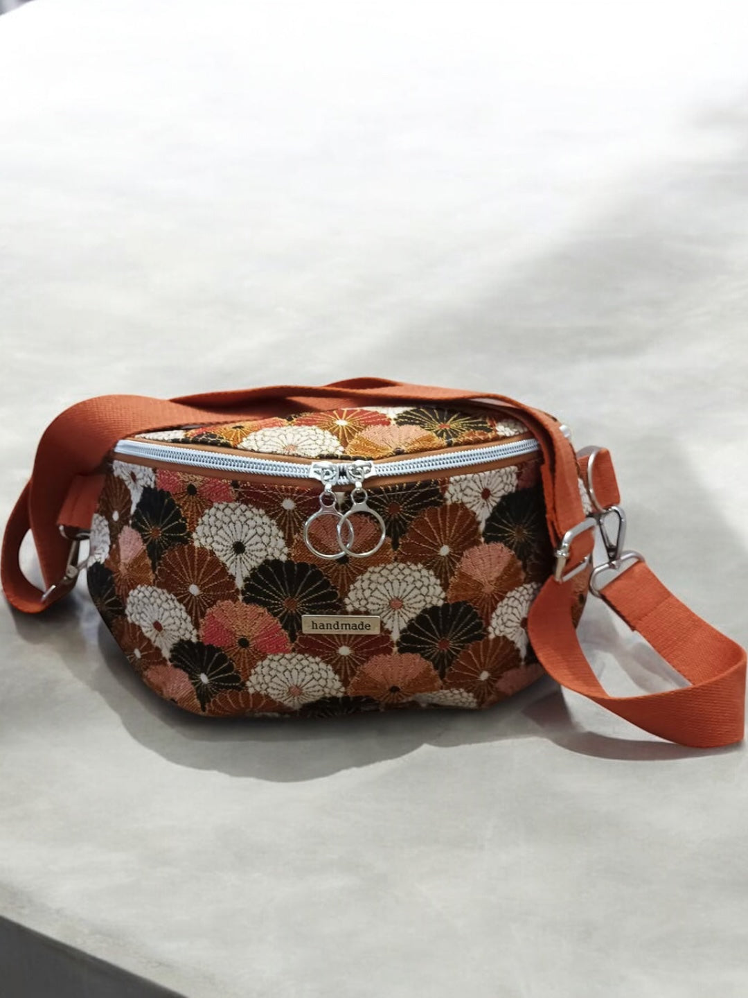 Sac banane en tissu motifs léopard jaune fond écru fait main