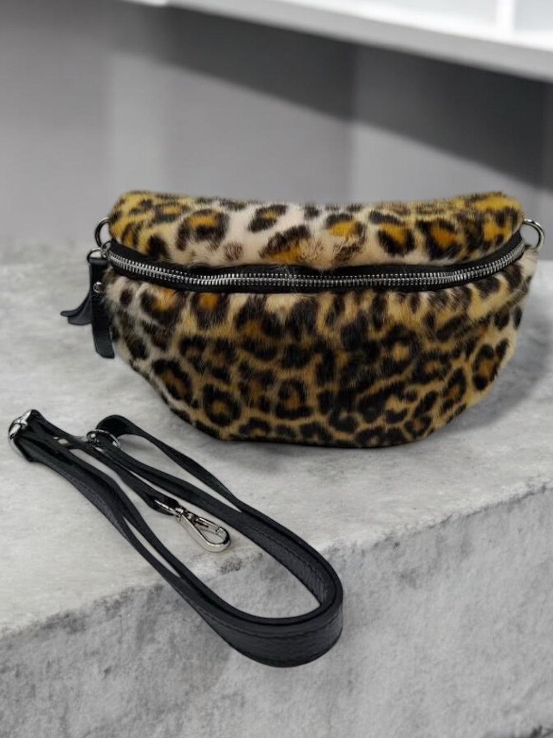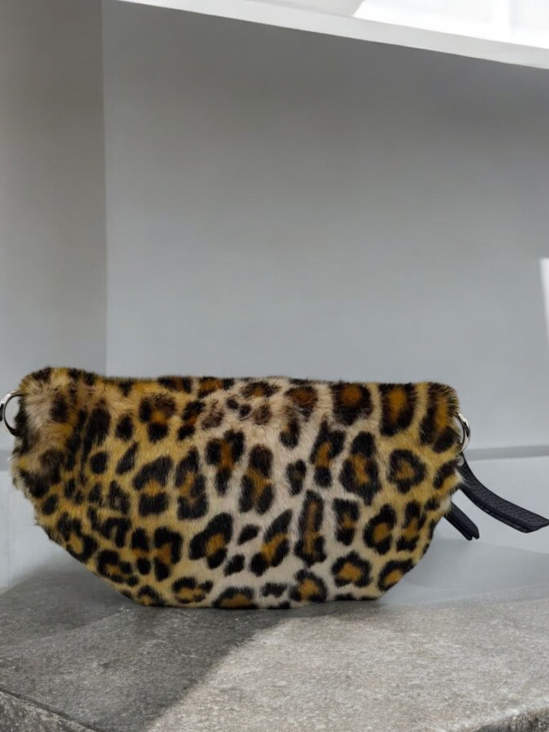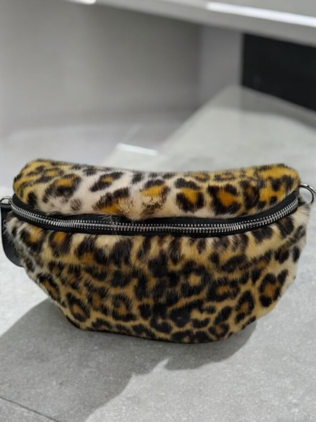 Sac banane peluche fausse fourrure à motif léopard effet poil
