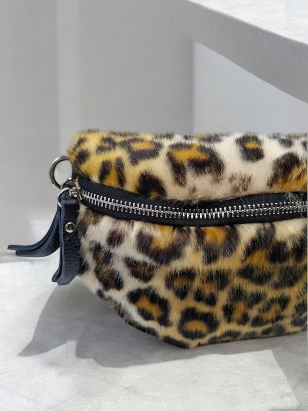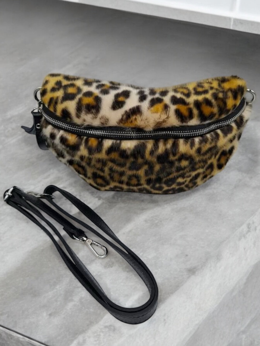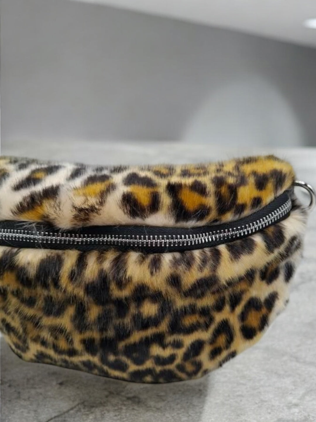 Sac banane peluche fausse fourrure à motif léopard effet poil