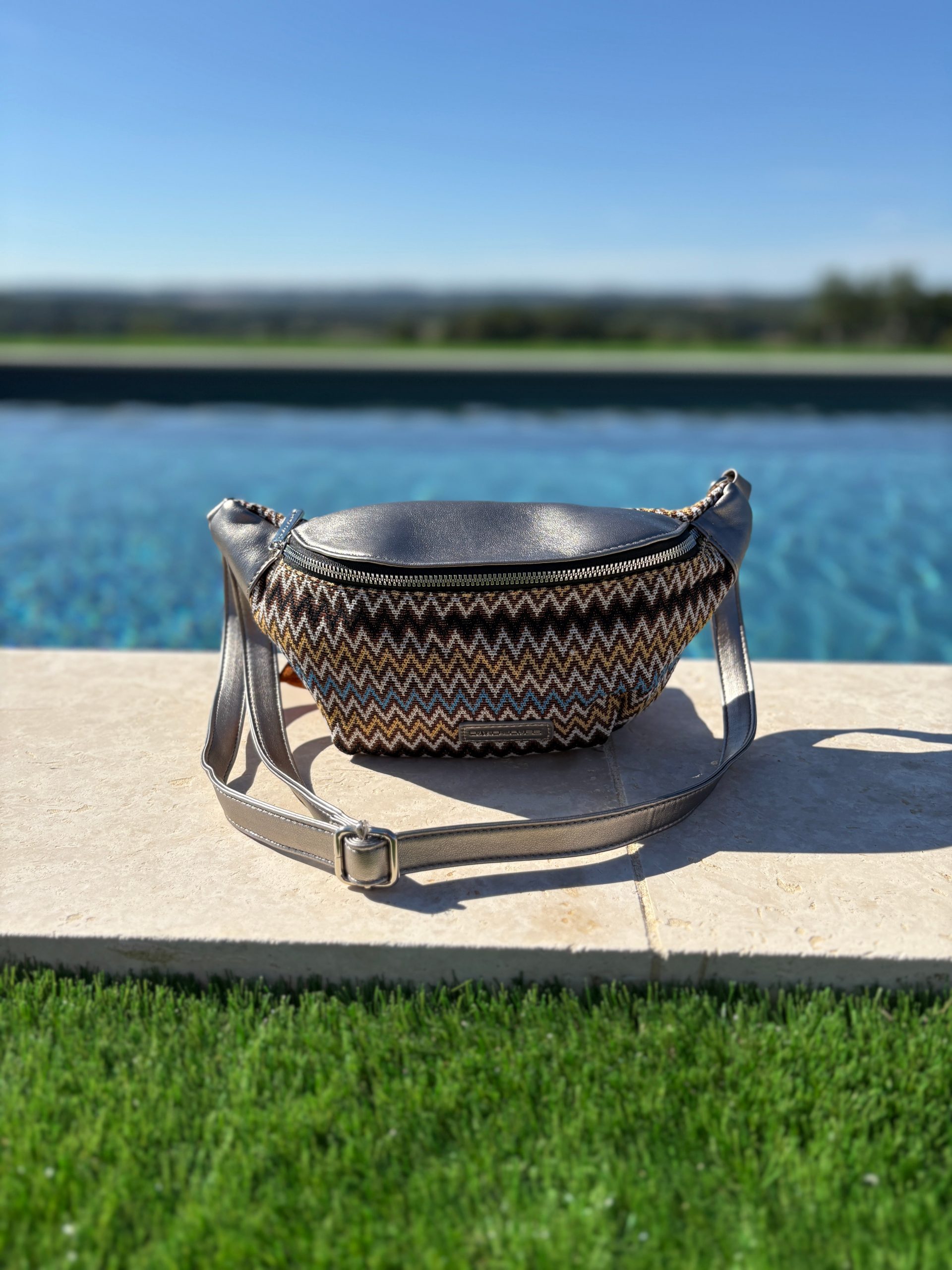 Sac banane simili cuir et tissu argenté